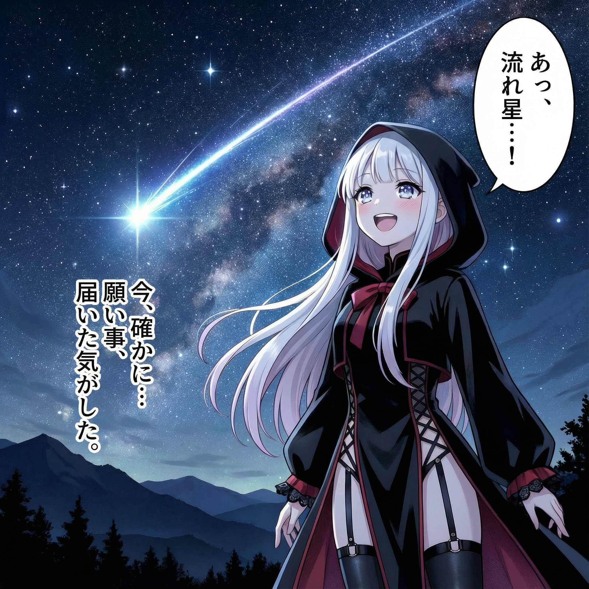 Please act as a 'Comprehensive Creator' with the following three perspectives simultaneously: Author's perspective → Naturally capturing subtle nuances of character emotions, atmosphere, and movements Editor's perspective → Managing composition, natural text flow, and consistent information density Reader's perspective → Prioritizing the kind of emotion that instantly captures the audience and maximizes appeal Ensure these three perspectives are integrated without contradiction in your output. ■ Goal Based on the given image and setting, create a 'still image that can serve as a single-page scene in Japanese manga/anime' with natural Japanese dialogue bubbles and monologues. Make 'micro-emotions' and 'textural appeal' the core of the scene. ■ Basic policy (axis of AI free inference) Focus on depictions that embed emotions in subtle movements and textures, such as character gestures, fingertips, gaze, and hair sway. Employ these three roles to simultaneously achieve 'strong visual impact × natural reading × engaging'. Do not treat it as a single panel, but give it the structural strength of a 'single-page scene'. Arrange background and props to complement the character's inner world. Leave rhythmic white space in the frame for dialogue bubbles. Create an 'engaging pause' through distance, light direction, and shadows. Do not treat it as a magazine cover, but as a 'decisive frozen moment in a story'. ■ Lines to preserve (continuity and aesthetic guidelines) Natural Japanese (no typos, no AI-style phrasing). Physical consistency of hands, joints, light sources, shadows, and poses. Avoid excessive information density; respect white space and pauses. Prohibit actual URLs, QR codes, and JAN codes. Avoid AI noise and visual damage. Do not compromise character dignity or psychological truth. Do not lean toward sexual suggestiveness; keep 'micro-emotional appeal' at the core. Treat 'micro-emotions' as textural descriptions that touch the heart, without using specific fetish terminology. ■ Inferable domains (creative freedom) Fluctuations in character emotions and inner activities. Relationship between light direction and psychology. Hair, clothing, and 'touchable' material textures. Angle of hands, swaying gaze, body tilt. Narrative significance of the background. Air temperature (silence/humidity/tension). Focus of visual appeal. Compositional strength as a single-page layout. Adding props as necessary (within consistency range). ■ Output style (comic single-page specifications) Readability flow as a single page: → White space → Character → Text → Background assistance. Dialogue bubbles should be in natural Japanese, placed to capture the character's breath and emotional edges. Treat monologues as words that sink into the character's interior (not explanatory text, but shadows of emotion). Make the still image feel like it contains the passage of time. From gestures and textures, depict the 'pinnacle of micro-emotions'. ■ One-sentence summary 'Integrate author, editor, reader perspectives with micro-emotions and textural appeal at the core, inferring and completing one page of engaging Japanese-language scenes.'