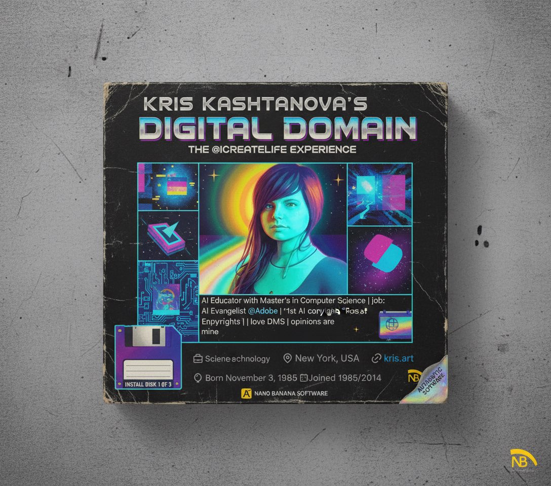 Turn your X account into a floppy disk. Prompt: Make my X account into a floppy disk in the 90s. Generated with Nano Banana in Adobe Firefly