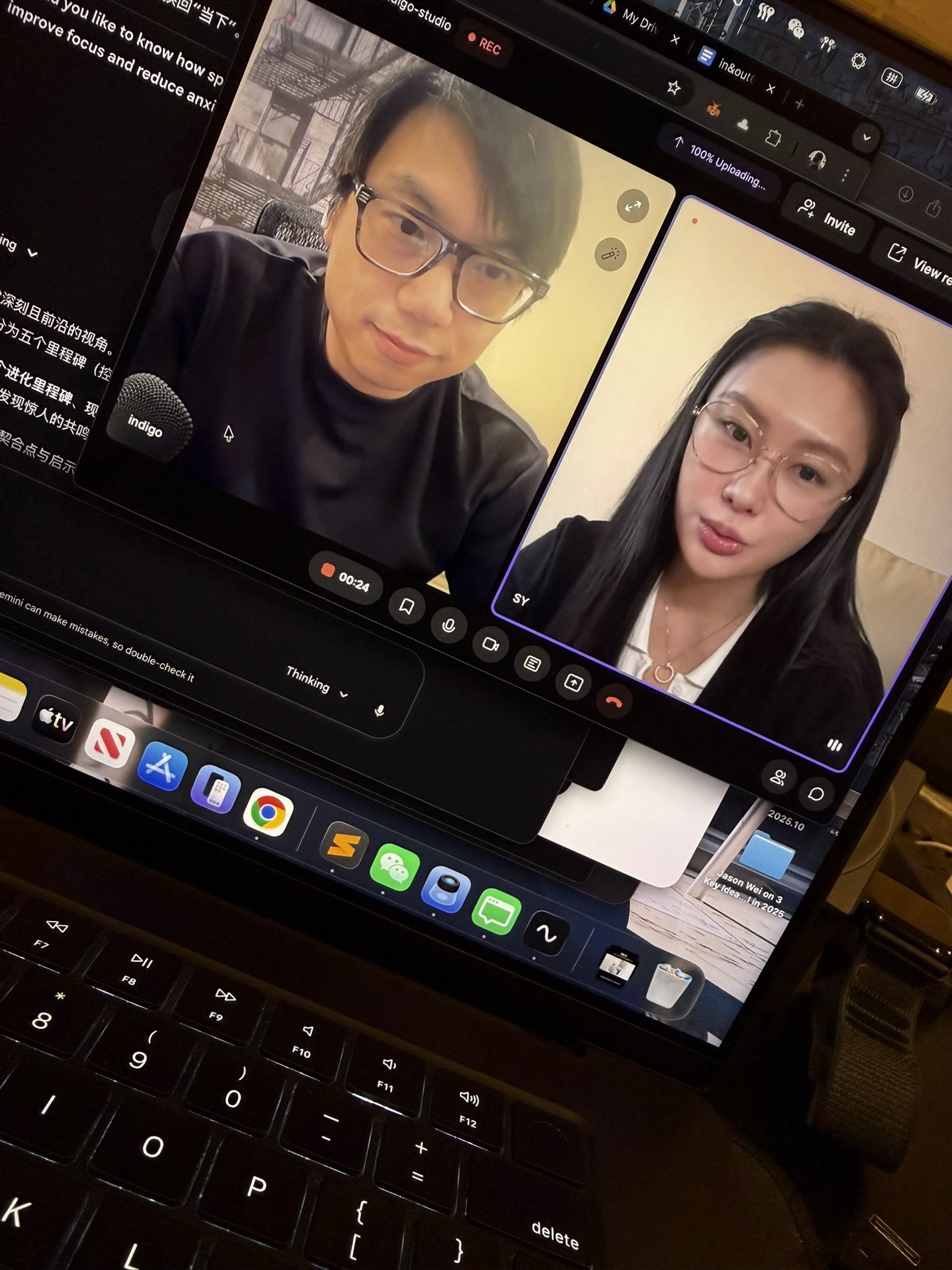 先拿兩張人像作為參考圖,然後讓 Nano Banana 用這兩張圖生成播客封面,指定背景「黑色概念圖」,燈光「演播室」,可以指定參考的美劇封面,也可以不說,自由發揮。