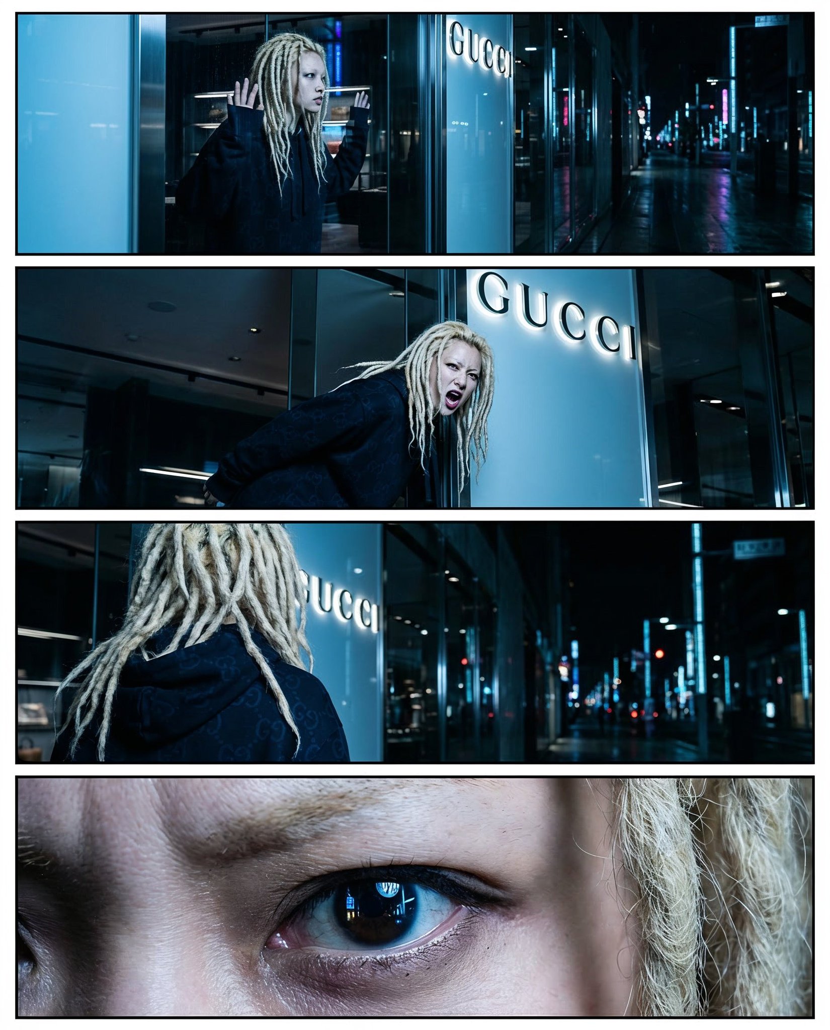生成一个特写镜头,聚焦于 她毛衣图案的细节、靴子 等。