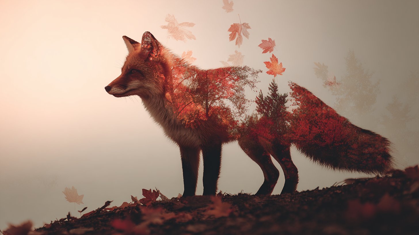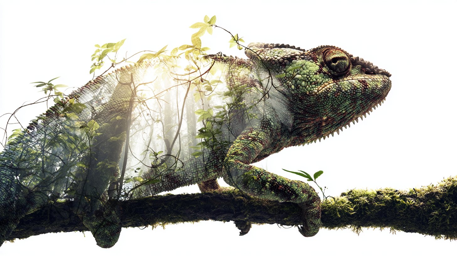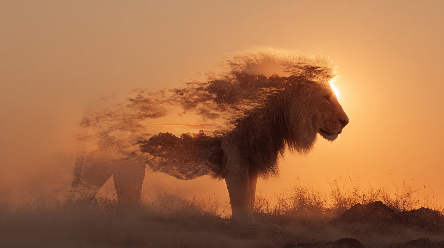 双重曝光:融合自然元素的动物剪影