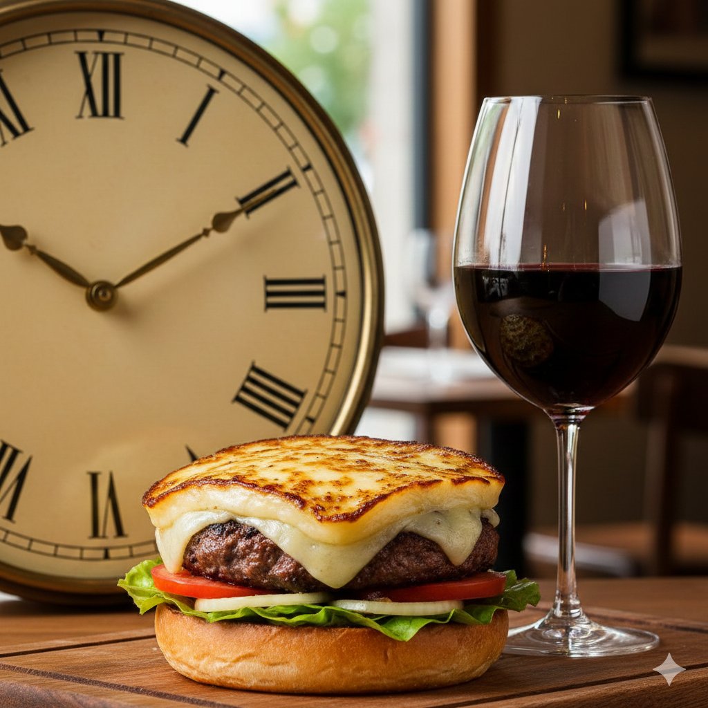@GoogleDeepMind刚刚开辟了新领域。Nano Banana Pro完美完成了我最难的提示词:'创建一张指针式时钟显示15:32的图像[不是数字式且不是其他时间],一个配有烤金黄波萝伏洛奶酪的汉堡,以及一杯装满的红酒。' 第一张图片Nano Banana Pro。第二张图片Nano Banana。天壤之别