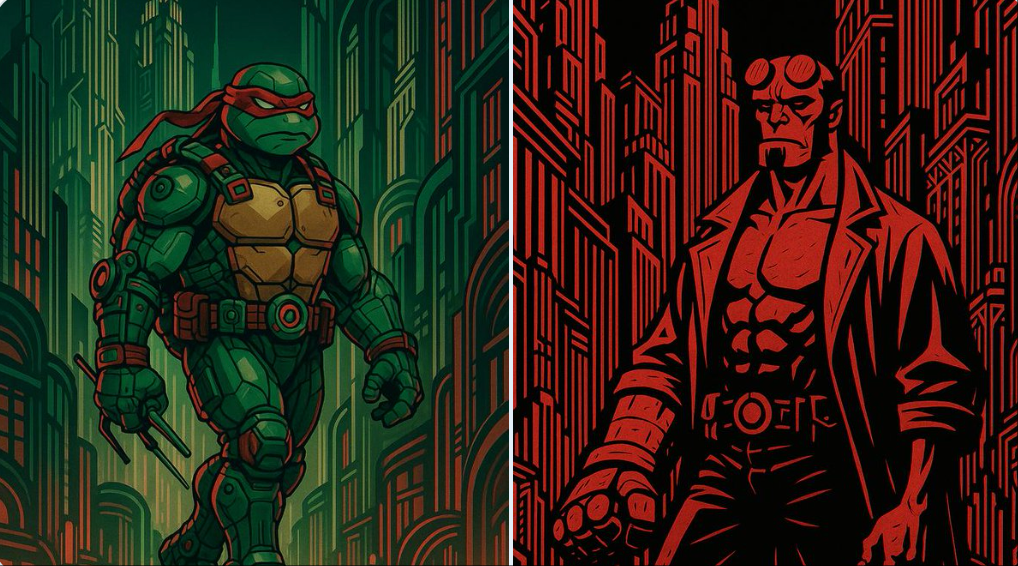 [主题] 位于装饰艺术大都市内,展示了 1920 年代建筑的宏伟和几何优雅。使用流线型的形式和装饰性细节,突出 [COLOR1] 和 [COLOR2] 的复杂调色板,以反映那个时代的繁荣。