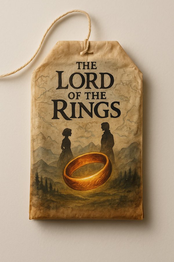 一个复古茶包孤零零地放在干净的白色背景上,上面手绘着类似书籍封面的复杂图案。这个茶包有着细腻的陈旧纸张质感,搭配柔和温暖的光线,细节逼真。在手绘图案上,留出一块清晰的空白区域,并标注为【BOOK】,用于填写书名。整体呈现电影般的质感,高分辨率,采用9:16的竖版格式。