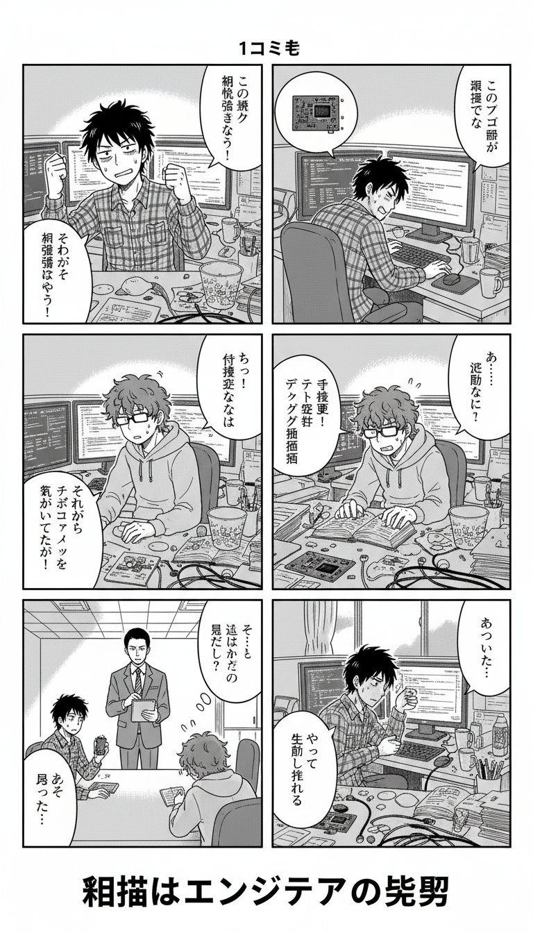 生成一个关于嵌入式工程师辛酸的四格漫画。
